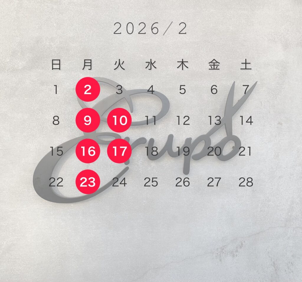 【2月定休日のお知らせ】
